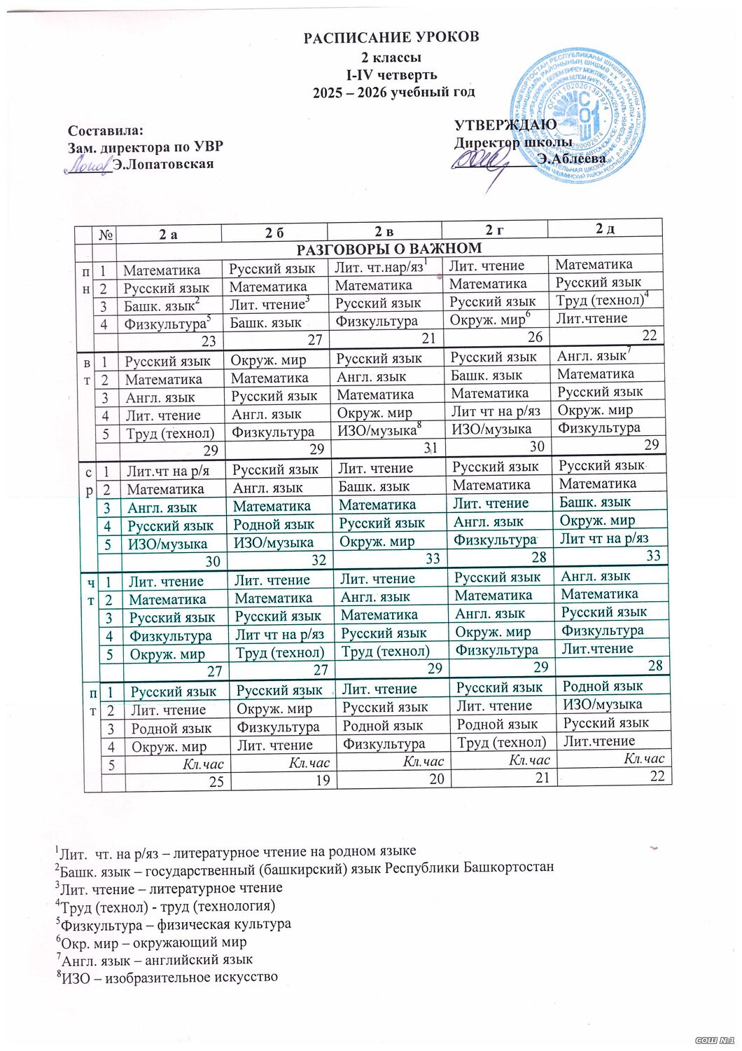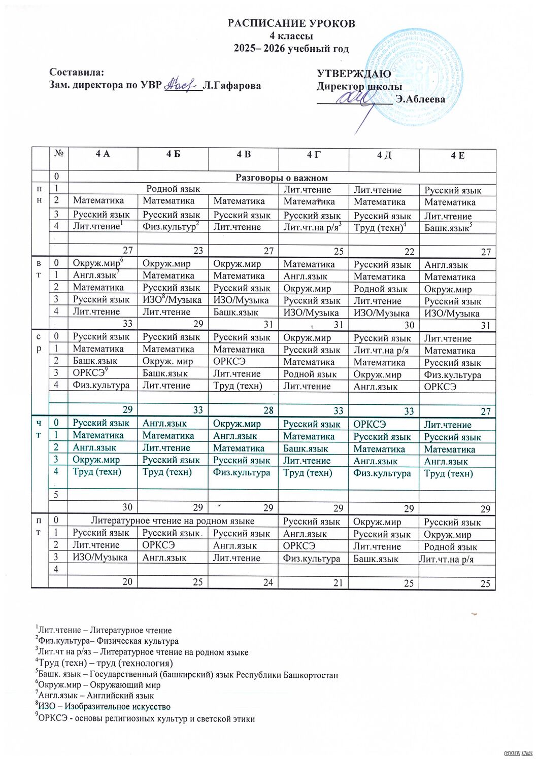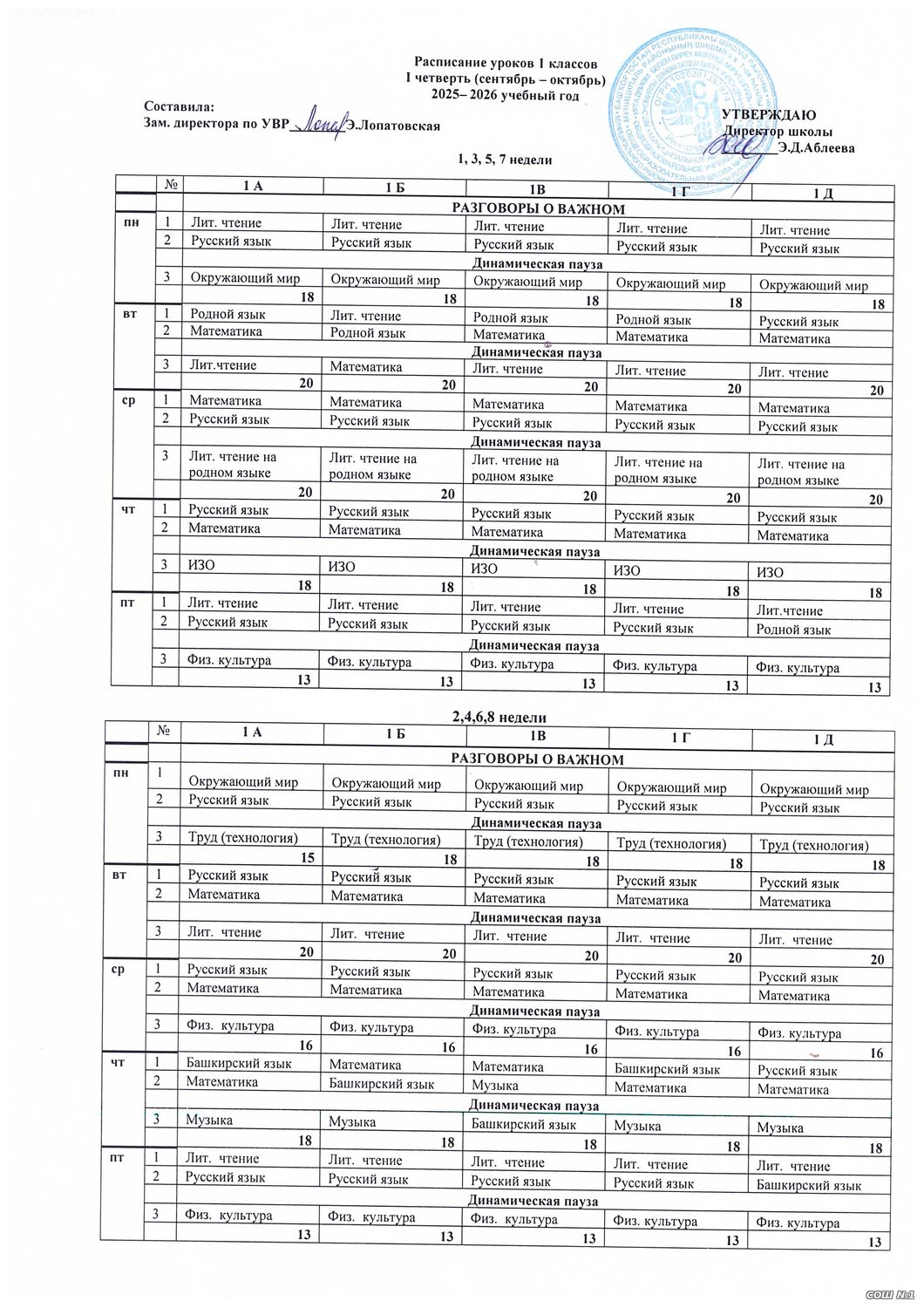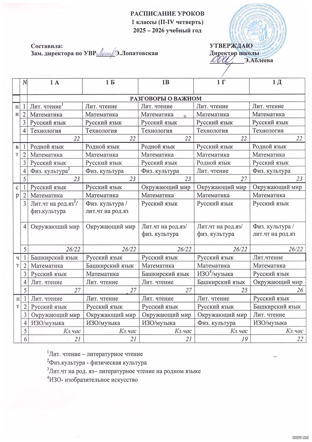 Расписание уроков для обучающихся 1-4 классов