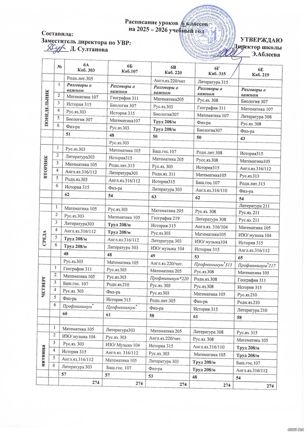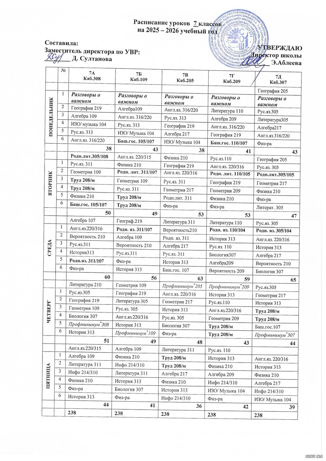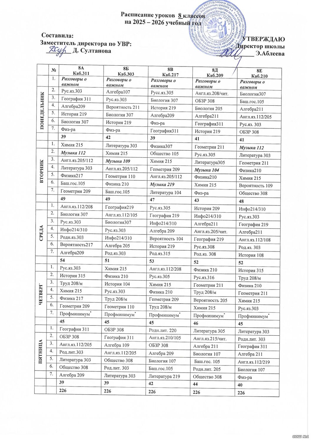Расписание уроков для обучающихся 5 -9 классов