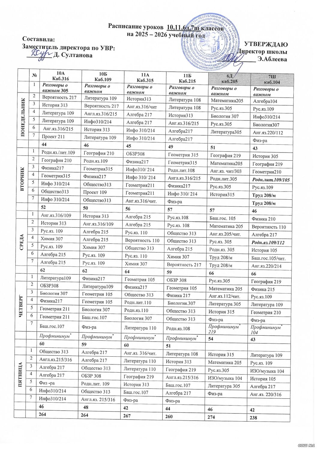 Расписание уроков для обучающихся 10-11 классов