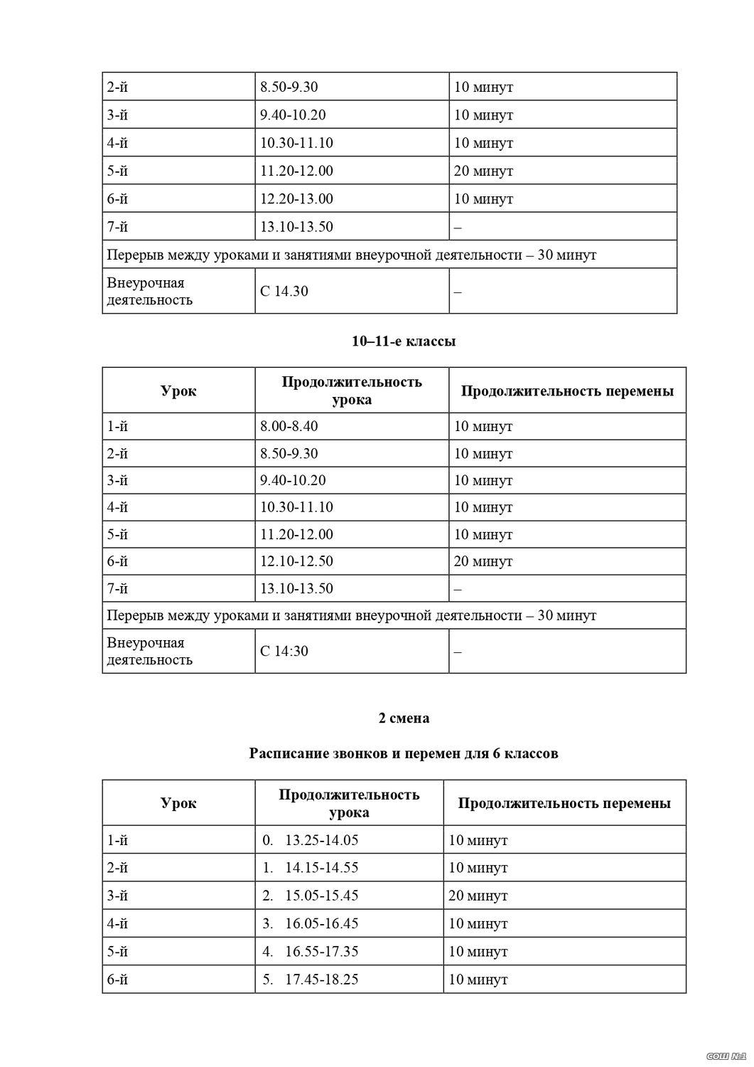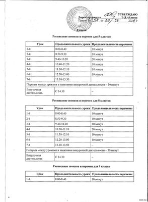 Расписание звонков на 2025-2026 учебный год |